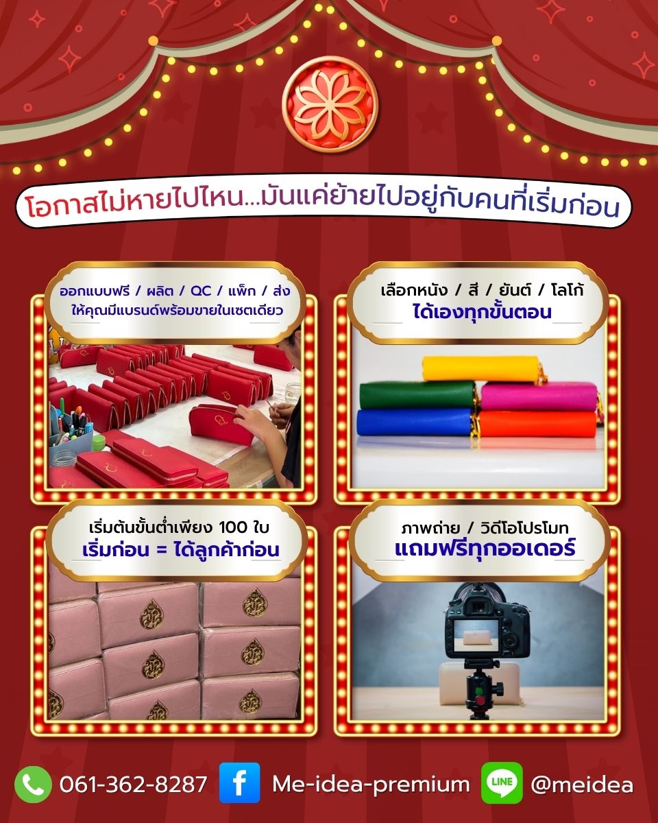 ผลิตจริงด้วยหนังคุณภาพดี สีมงคล และโลโก้เฉพาะของคุณ